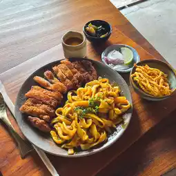 Everyone, we found a super cute Khao Soi shop in Chiang Rai. It's so good. It's a Japanese-style homemade fresh noodle Khao Soi.