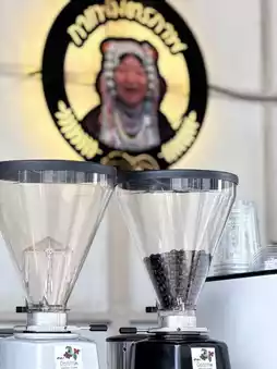#GetDiscountsWithoutLuck This shop sells organic coffee from a garden in Pangkhon, Chiang Rai Province. It's called Mitpap Coffee Shop, and they actually have many branches, but today we tried the one behind the hospital. They offer a wide variety of basic and signature dishes. We ordered an Americano and a green tea, and everything tasted delicious. They have both hot and iced coffee, and there's a huge selection to choose from. The flavors are very well-balanced, and coffee lovers shouldn't miss this. They don't just sell coffee; they also sell coffee beans, offering both dark and medium roasts.