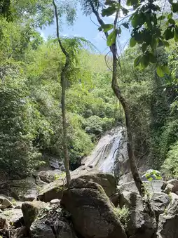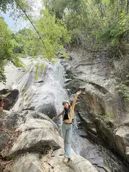 If you're looking for a peaceful and refreshing atmosphere to relax your mind, this is the place for you! Huai Mae Sai Waterfall is one of the beautiful natural attractions in Chiang Rai. Located within the Lam Nam Kok National Park in Mae Yao Subdistrict, Mueang District, Chiang Rai Province, it is about 20 km from Chiang Rai city center. This medium-sized waterfall originates from the Huai Mae Sai stream, with its source at Doi Bo. The water cascades down a 15-meter-high cliff, flowing over large rocks with crystal-clear water. The distance from the parking area to the waterfall is just 700 meters, making it an easy and comfortable walk. On my first visit, I was impressed by the tranquility and the cool, refreshing atmosphere. However, please note that there is no phone signal at the waterfall. You can bring food to enjoy by the waterfall as well.