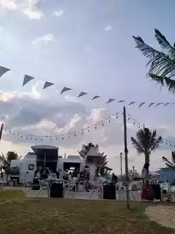 On the Beach at Singha Park Chiang Rai is part of the restaurant "Cargo on the Beach 3," a beach club-style eatery located within Singha Park. The restaurant is designed to resemble a beach, giving visitors the feeling of being by the sea. It features several picturesque photo spots and offers both outdoor and indoor seating, making it a perfect place to relax and enjoy a meal. The menu is diverse, including Thai cuisine, Western dishes, snacks, and a variety of beverages, ranging from refreshing drinks to alcoholic options. Besides dining, visitors can also enjoy other activities in Singha Park, such as cycling, zip-lining, or taking in the scenic views of the tea plantations.