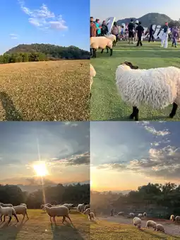 #VisitSecondaryCities Sheep Farm Australia, Chiang Rai, a newly opened sheep farm with an Australian feel. The sheep are adorable, fluffy, and soft. The sheep are purebred. We recommend visiting between 4:00 PM and 6:00 PM for the beautiful light (I repeat, the light is absolutely beautiful!). The natural greenery and the adorable sheep are also featured in the cafe. Coffee, drinks, and snacks are available at great prices. **Oh, I forgot to mention that
