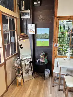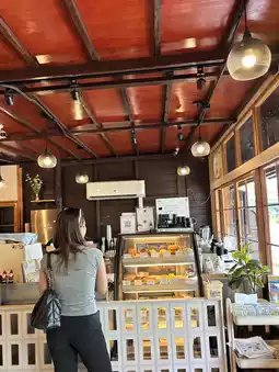 📸 Plenty of photo opportunities, both inside the cafe, decorated with wooden furniture and beautiful natural lighting, and outside with lush greenery, creating a homey, minimalist feel.
