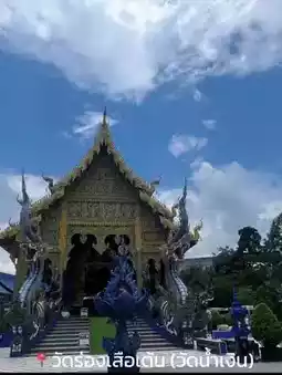 Next, head to 📍 Wat Rong Suea Ten, striking with its blue and gold tones and white Buddha statue inside the chapel. Every angle is stunning.