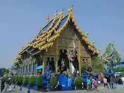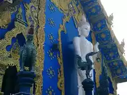 📸 The temple is beautiful, built in a modern Lanna architectural style. The religious building features a distinctive blue and gold color scheme, while the Buddha image is a pure white.