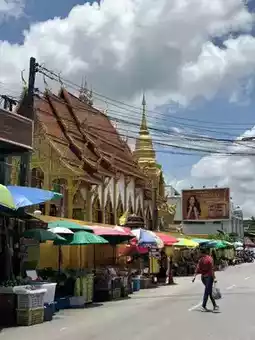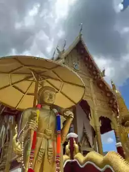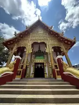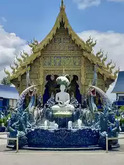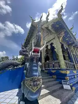 After we were full, we strolled around the city market and unexpectedly stumbled upon Wat Mung Muang, a beautiful temple hidden in the middle of a busy market. We then took a songthaew to the renowned landmark, Wat Rong Khun, which lived up to its reputation. We spent a delightful time exploring the area. Return to the city center to rest, and the next morning, we went to another highlight of Chiang Rai, Wat Rong Suea Ten, whose vibrant blue color contrasted strikingly against the sky.