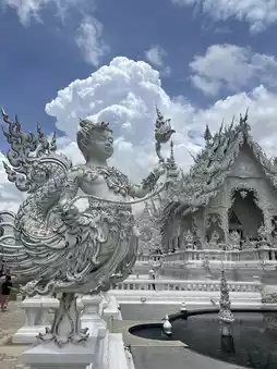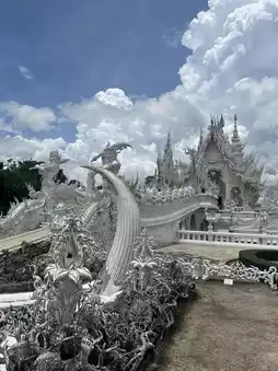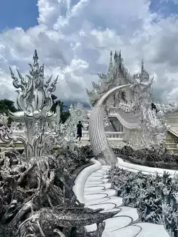 Located on the outskirts of Chiang Rai, Wat Rong Khun (White Temple) is a modern Buddhist temple begun by Thai artist Chalermchai Kositpipat in 1997.