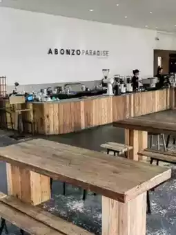 If you're looking for a relaxing spot that feels like recharging in the midst of nature, "Abonzo Paradise" is a must-visit destination. Surrounded by lush greenery and distant mountain views, every corner offers a captivating view. The relaxed atmosphere is perfect for a quiet cup of coffee, a good book, or a casual get-together with friends. The shop's simple yet charming decor offers plenty of photo opportunities, including a lush garden, crystal-clear water, and homey seating. The menu offers a wide variety of flavorful drinks, perfectly sweet and fluffy cakes, and heartily crafted main dishes that rival those found in famous restaurants. Enjoying a meal amidst the cool breeze and chirping birds is truly a treat, as if you've escaped to a little paradise. For those seeking simple pleasures, consider a visit to "Abonzo Paradise." You might fall in love with the warm atmosphere and never want to leave.
