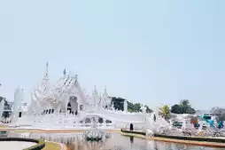 When thinking of Thailand, the land of Golden Temples, you might immediately picture its famous golden temples. However, Wat Rong Khun, an extraordinary all-white temple, offers a surprising and exciting experience. Ranked among the most beautiful temples in the world, it has also become a national cultural symbol of Thailand. Located in the northern Chiang Rai province, Wat Rong Khun was constructed in 1997, inspired by the vision of Chalermchai Kositpipat, a renowned Thai painter and architect. As an artist and devout Buddhist, Chalermchai envisioned a temple entirely in white to represent Buddha's purity. The temple remains incomplete, as Chalermchai plans to create a complex of nine main structures. He estimates that completing the project would take 60-90 years of dedicated effort, but given his age of over 60, he has enlisted the help of his five best students to ensure the temple's completion after his passing. Known as Wat Rong Khun, it is also referred to as Thailand's White Temple due to its entirely white design. Combining traditional Thai temple architecture with surreal elements, the temple's unique design is truly awe-inspiring. Inside, visitors are greeted by a dazzling pure white interior, reminiscent of snow-covered surroundings. The temple grounds feature a park, an aquarium, and stunning white sculptures. The intricate carvings and sculptures are so detailed that exploring them from one structure to another never gets dull. The temple is easily accessible, just a 30-minute bus ride from Chiang Rai's provincial center. Visitors should dress modestly when entering the temple. A notable feature of the site is a striking yellow building within the temple grounds. While many might mistake it for a special structure or temple, it is actually a two-story restroom, adorned with elaborate and splendid carvings.