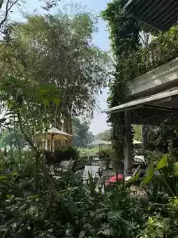 A chill cafe for all ages. Whether you're looking for a place to relax, chat, eat, or have a dessert, or just have a casual meeting or work meeting, this cafe is the answer. It offers a natural and cooling atmosphere, located right next to the Kok River in the heart of Chiang Rai. Just turn on your GPS and drive there. It might be a bit confusing, as I've tried it, but it's a different experience on a rainy day. However, I don't recommend coming here with a lot of people, as you can't sit outside when it's raining, and the space inside is quite limited.