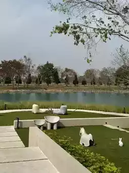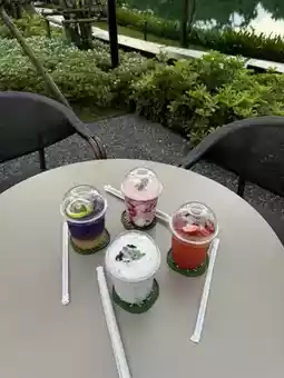 Located on a luxurious lakeside in a foreign country, the cafe offers many photogenic spots.