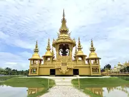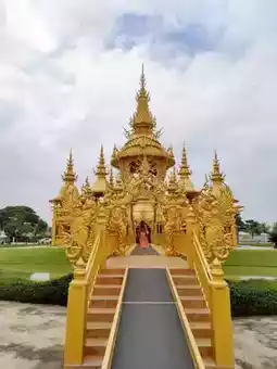 ภายในบริเวณวัดไม่ได้มีแค่อุโบสถสีขาวเท่านั้น แต่ยังมีอาคารและประติมากรรมสีทองอร่ามที่สวยงามไม่แพ้กัน รวมถึงสวนที่ตกแต่งอย่างร่มรื่นและมุมถ่ายรูปอีกมากมาย 🌳📸 ยิ่งถ้าได้มาในช่วงที่อากาศดีๆ บอกเลยว่าแสงสวยมาก ถ่ายรูปออกมาคือปังสุดๆ!