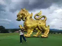 Singha Park in Chiang Rai Province is a charming natural tourist attraction perfect for all types of relaxation. Its spacious interior is filled with lush green tea fields, colorful seasonal flowers, and a refreshing atmosphere amidst the mountains. A key highlight is the large golden lion symbol standing prominently in the grassy area, a popular tourist photo spot. There are also a variety of activities available, including cycling through the farm, horseback riding, scenic drives, and zipline adventures. Families and couples can enjoy the cafe and restaurant, which serve dishes made with fresh, locally sourced ingredients. Singha Park is not only a natural attraction, but also a hub for a variety of activities, offering both relaxation and new experiences for visitors of all ages.