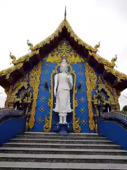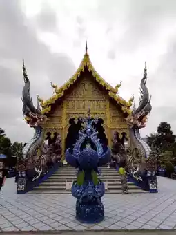 Wat Rong Suea Ten in Chiang Rai is absolutely breathtaking! It's famously known as the "Blue Temple." 💙 From the moment you arrive, you're greeted by magnificent blue Naga (serpent) statues at the entrance, leading to the main chapel adorned with deep sapphire blue and dazzling gold accents. The craftsmanship is truly spectacular! 🤩