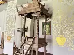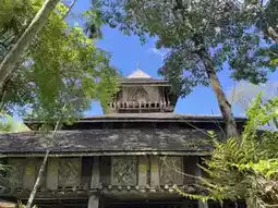 Worship the sacred Buddha image in the Ho Kham, admire the teak exhibition, and admire folk art in the Ho Kaew. Surrounded by a tranquil pond, it features a garden of fragrant trees and diverse flora.