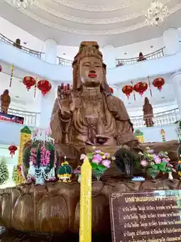As soon as you step inside, you'll be struck by the large white Guan Yin statue,