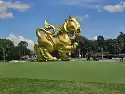 🦁 A landmark in Chiang Rai! — When you arrive, you must stop and take a photo with the "Golden Lion", a giant in the grass, sparkling in the sunlight, a symbol of power and coolness. 💛✨