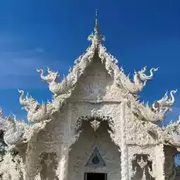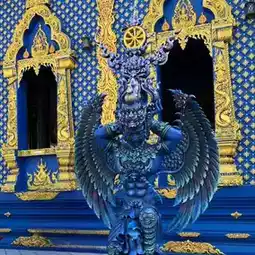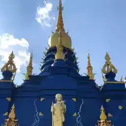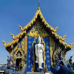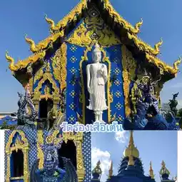 2. Wat Rong Suea Ten, another beautiful temple in Chiang Rai that those who love making merit or taking pictures must visit at least once. Because the highlight of the temple's chapel is very beautiful and magnificent. It was built in a contemporary religious art style. The blue color contrasts with the beautiful gold color. It is a unique identity that is unlike any other temple. Inside the chapel, there is a large white Buddha statue named Phra Phuttha Ratchamongkhon Bodi Trilokanath. The height is 20 meters and the top of the pagoda contains the relics of the Lord Buddha. Therefore, it is a place of worship for Buddhists.