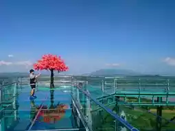 The skywalk faces north, about 400 meters from the Mekong River, parallel to the Chiang Saen-Chiang Khong road. You can see the scenic views of the Mekong River on the Thai side, Laos, and Myanmar.