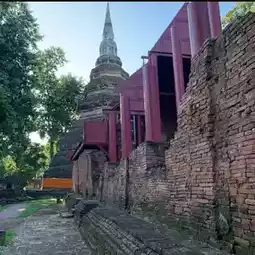 This temple has brick-like, almost Western-style walls. I went there during the day, and it was fun because it had a slightly different atmosphere compared to other temples in Thailand.