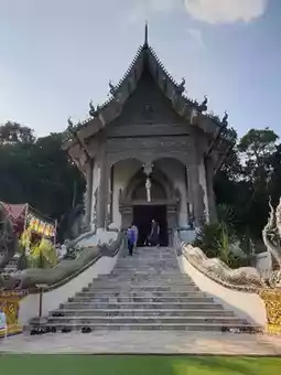 .. If tourists want to go up to the Skywalk viewpoint, they can walk up the stairs behind the royal chapel. However, if you want to take the temple's songthaew, you have to pay a fee.