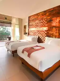 Bansaeo Garden and Resort, located in the charming riverside town of Chiang Saen in Chiang Rai Province, offers a peaceful retreat with comfortable rooms, suites, and pool villas overlooking the Mekong River. The resort features relaxing amenities such as outdoor pools, a spa, a fitness center, and a restaurant serving both Thai and international cuisine. Surrounded by tranquil gardens with peacocks and swans, it’s an ideal spot to unwind after exploring nearby attractions like the Golden Triangle, Hall of Opium Museum, and Wat Phra That Chom Kitti. Chiang Saen itself is a historic city rich in culture and natural beauty, perfect for visitors who want to experience northern Thailand’s heritage, local markets, riverside views, and ancient temples, all within easy reach from the resort.