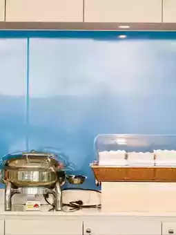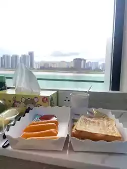 Breakfast is also served as a mini-buffet. The main items include boiled eggs, fruit, bread, tea, coffee, yogurt, and fruit juices, making it a perfect breakfast.