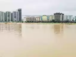 parking, and room doors. The view of the Mekong River and buildings from the neighboring country are impressive, complete with colorful lighting.