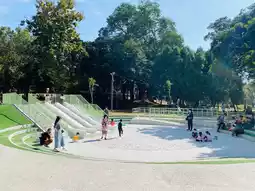 There are two sand pits and a terrazzo slide nearby.