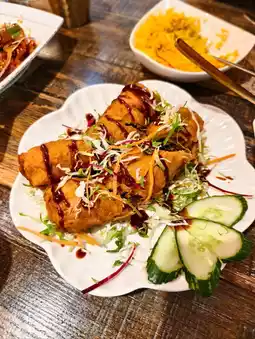 This is one of the few places in Chiayi that specializes in Indian cuisine. The restaurant is small, so reservations are required. There's a parking lot behind the restaurant, which is relatively convenient. The Indian food here has been refined, with a slightly lighter spice profile. It's not quite as authentic as the ones I had in Beijing! There aren't many seats, so I ordered a few of their must-try dishes. The Punjabi lamb curry was a roux-style curry with a nice balance of fat and lean lamb, and the mutton's tanginess was barely noticeable. It also came with some potato wedges drizzled with light cream. It wasn't very spicy. The Indian lamb rolls didn't taste like much meat; they were just fried diced lamb and vegetables. It was pretty average, not recommended! The Indian red sauce fried chicken was very similar to Korean fried chicken, with the chicken coated in tomato sauce. The taste was just average. The butter naan was quite good! Soft on the inside and crispy on the outside. The fried turmeric rice was Indian, with a strong turmeric flavor. The Indian milk tea was quite authentic, and the Indian rice pudding was similar to what I've had at Indian restaurants in Beijing. The desserts and drinks were also quite good, with adjustments to local Taiwanese tastes. It wasn't too spicy or strong, and it was okay for a Chiayi local! #ChiayiFood #Chiayi #IndianCooking #ExoticStyle #ExoticCooking