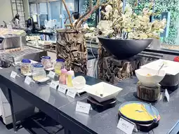 The breakfast spread is rich and diverse, featuring fresh salad, both Western and Chinese hot dishes, a live noodle station, and a variety of fruits and desserts. The highlight is the ability to choose your favorite ingredients and have the chef cook them fresh at the noodle station, offering a dining experience akin to a high-end buffet restaurant. Every dish reflects the hotel's attention to detail, and the staff responsible for seating and cleaning are very friendly, making the dining experience stress-free and enjoyable, allowing you to start your day with a satisfied appetite.