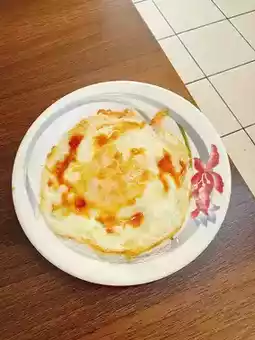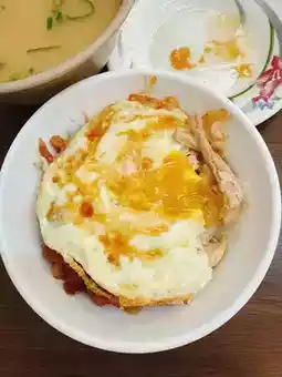 The half-cooked fried egg is a must-have! It pairs perfectly with the turkey rice. The egg is freshly fried upon order and served on top of the rice. The runny yolk mixed into the chicken rice enhances its aroma and taste.