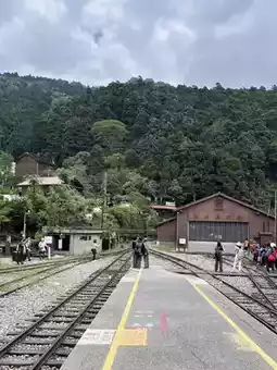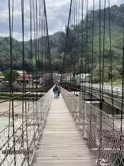 The journey to Alishan begins with towering trees, fresh mountain air, and the iconic hanging bridge that sways gently above the lush valley.