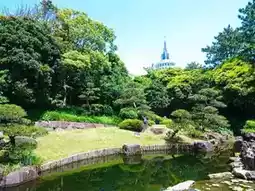 Mihama Garden is a Japanese-style garden with an entrance fee of only 100 yen, free for those over 65. The garden is not large, making it perfect for a leisurely stroll to appreciate the beautiful landscaping. There is a tea shop where you can enjoy some snacks and tea while taking in the scenery, priced at 700 yen. It is about a 10-minute walk from Kaihin-Makuhari Station. The surrounding area is bustling, but this place is very quiet, like another world. The well-maintained winding garden is fantastic, and I love it here.