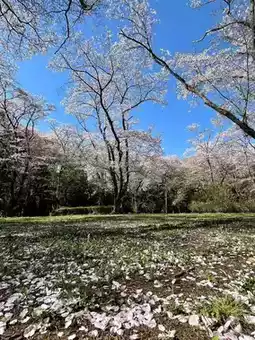 The park features around 1,500 cherry trees, primarily Somei Yoshino, which bloom in late March to early April. During peak season, long walking trails and open lawns become tunnels of soft pink petals. The cherry blossoms are beautifully spread across hills, ponds, and meadows, offering a tranquil setting for picnics and strolls.