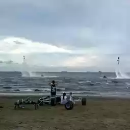 There's a fireworks display, performances by artists, and even a surf show on the beach.