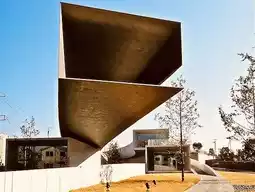 - The buildingâs **30-meter cantilevered "tubes"** create a futuristic gallery space with 500 meters of curved corridors, lit by LED "Milky Way" ceilings to enhance viewing .