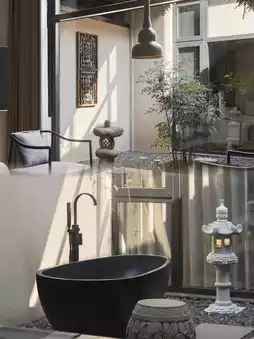 Upon arrival, enjoy an aromatic welcome ceremony with incense and fragrant beads, select a scented bracelet, or even don a Warring States robe for an instant journey back to the Wei-Jin period! With only 20 suites - each named after classical poetry forms like "Niannujiao" and "Huanxisha" - every room features a private soaking tub or bathtub, while select suites include tea rooms perfect for family stays.