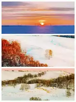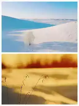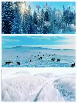 In winter, cross the ice and snow, through forests, sand, grasslands, and no man's land, the birch forest in the snowfield and rime is very spectacular, with herds of cattle and sheep and haystacks on the roadside.