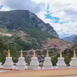 Beautifully built with seven pagodas, in front of the monastery, consisting of Tibetan Buddha statues on all sides, enshrined in a circle facing inward. Visitors can pray to the Buddha statue and ask for fortune sticks from it. At this point, we were destined to see the ancient village of Palagezong in the most beautiful angle.