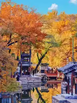 Běiláhú Hutong – Stroll among white ginkgo trees with misty reflections on the lake (mid–late October)