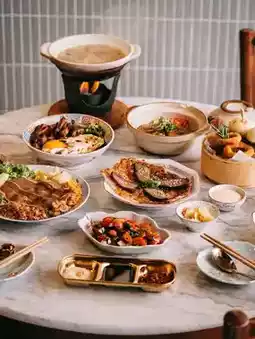 The restaurant’s atmosphere is decorated in a Chinese Modern style, blending the classic charm of a century-old building with contemporary details perfectly. Marble tables paired with wooden chairs evoke the feeling of an old tea house. It stands out with a large painted tiger and Chinese lanterns designed to match the restaurant beautifully.
