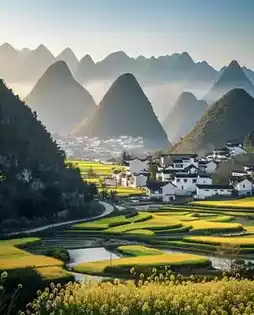 • ✨Wanfenglin: In February, a sea of canola flowers intermingles with the Bagua fields. In August, the rice paddies turn a vibrant green. Take a sightseeing bus to the Stars Holding the Moon viewing platform. In the afternoon, capture the layered peaks with the backlight, and in the evening, cycle through Nahui Village as wisps of smoke rise from the houses.