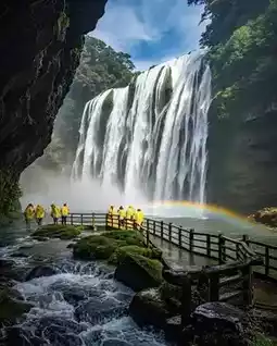 ✨Huangguoshu Waterfalls: During the rainy season (June-August), when the water volume is at its peak, walk through the Water Curtain Cave behind the falls and witness rainbows piercing the thunderous mist. The Doupotang Waterfall spans 105 meters, while the Yinlian Zhui Tan Waterfall cascades like silk ribbons. You can visit all three major waterfalls in about three hours.