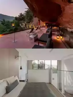 - Above the pool is the second waterfall in the cave, which is extremely luxurious yet refined. A true natural waterfall runs through the hotel. ⛲️