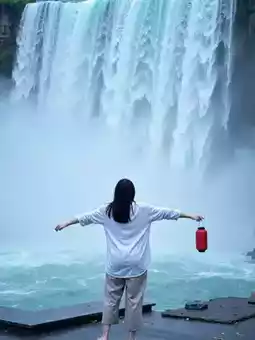 This place, known as the "Number One Danxia Waterfall," is truly extraordinary! A huge waterfall cascades down the Danxia cliffs, and the experience of watching the waterfall from inside the cave is exhilarating! Standing under the waterfall, water splashes everywhere, the coolness hits your face, super refreshing and stress-relieving~