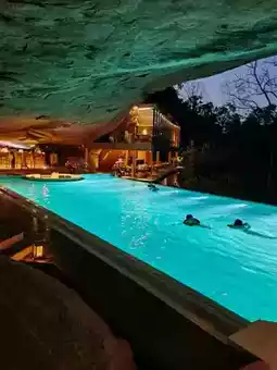 The rock wall constantly seeps water forming a natural bead curtain💦