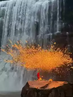 The mist from Chishui Grand Waterfall crystallizes into ice in the cold air💎