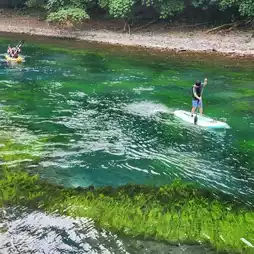 And the water below? It's outrageously clear. Saw people swimming and kayaking like pros (so jelly, BTW), but honestly, it looked wayyy too cold for me to try!๐ฅถ If you love pretty views or crazy clear rivers, this spot is a must-see.