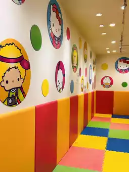 The interior was bathed in pink lighting, decorated with white clouds, and Kitty faces glowed on every wall. Even for a child, my smile instantly lifted.