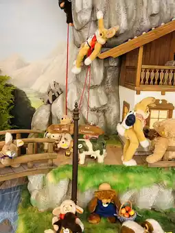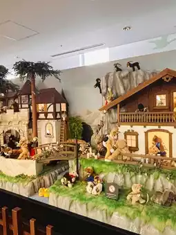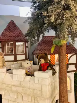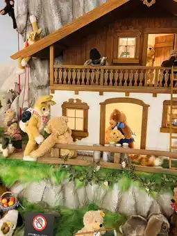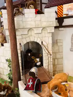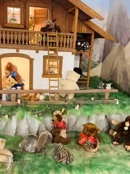 Teddy bears had created a little village. On the castle walls, a soldier bear held a flag, under a tree, a bear was tending a campfire, and inside a cabin, a baby bear was peeking out the window. Each one had such lifelike expressions, as if someone had carefully imbued them with individual stories.